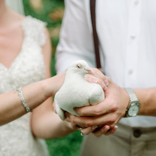 Julianne and Adam wanted to incorporate the memories of Julianne's childhood in Yorktown, Virginia for their wedding. We choose the Historic Hornsby House Inn for their ceremony and reception. A mixture of farm and round tables draped in Blush and Ivory petal linen was our setting under the string lights that were suspended between the old oak trees. Crystal chandeliers, hung from the trees to add sparkle to our evening under the stars. Colors of ivory and coral were detailed throughout the ceremony and reception.