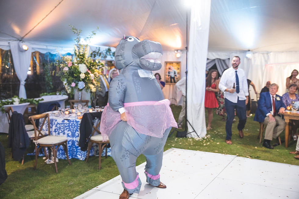 So many special moments throughout their wedding...father/daughter dances with her father and Rodney. A dance with her grandfather. A very special treat from her father-in-law, Rick who played a song while they danced on his flugelhorn. Her brother, Peyton, who is special needs had practiced his dance all year...he could hardly wait for his special dance to "Brickhouse" with Kasey!!!! Then as the party continued, glow sticks and sun glasses passed out we had a surprise visit from Hula the Hippo...that is correct we had an inflatable hippo!!!!